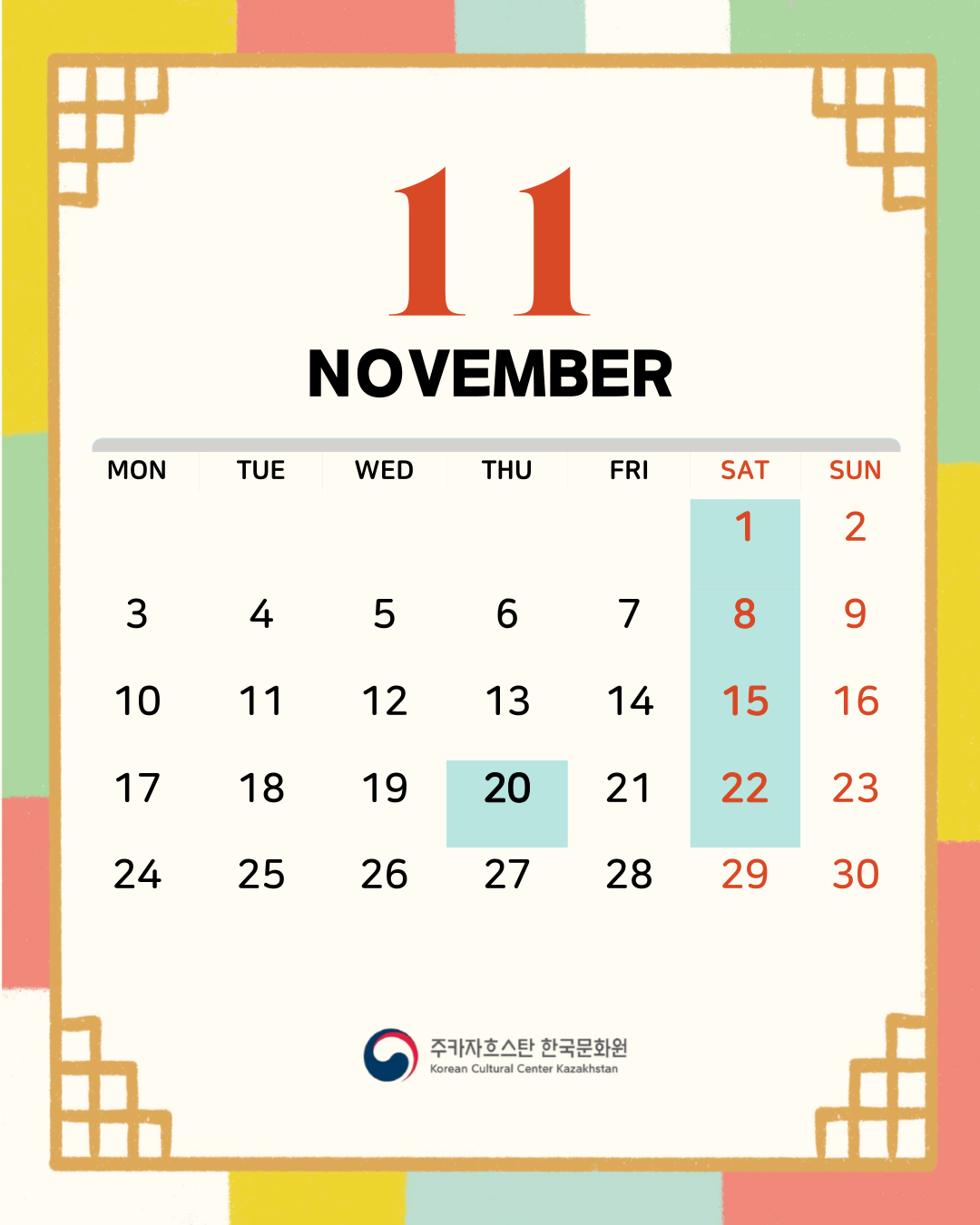 Корей мәдени орталығы 2025 жылғы қараша айында өтетін іс-шаралардың кестесін ұсынады.