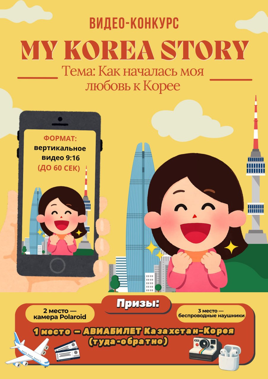 🥇 1 место — авиабилет Казахстан–Корея (туда-обратно)